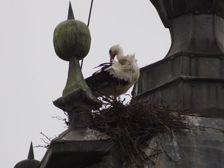 Tras la visita que han realizado a la basílica los días 10, 11 y 12 de marzo, han comprobado que las dos parejas de cigüeñas han vuelto a recuperar los nidos, para lo que ilustran también por medio de estas fotografías tal afirmación. “Igualmente es evidente el comportamiento nupcial de ambas parejas, con aporte de ramas al nido por los machos, cortejo, cópulas y permanencia continua de las hembras en los nidos”, han agregado.