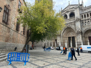 Talan uno de los cuatro árboles que hay en la plaza del Ayuntamiento de Toledo por riesgo de caída 26/10/2023 | Fidel Manjavacas