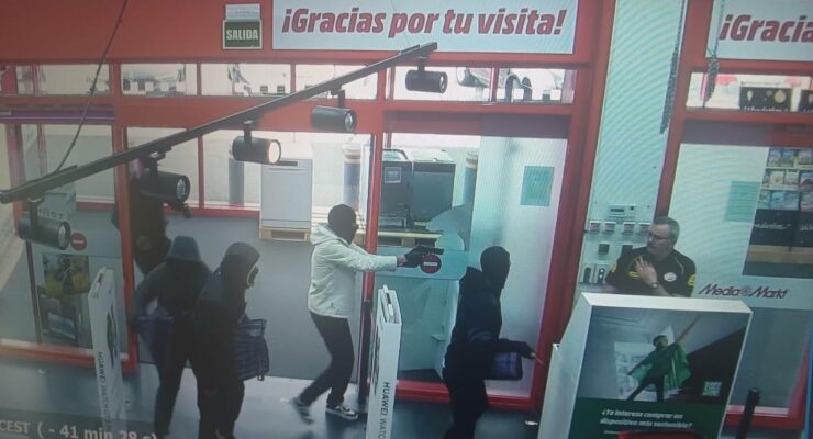 Entre cuatro y cinco sospechosos son los que han asaltado el establecimiento de MediaMark con armas de fuego sobre las 11:02 horas. La víctima es el vigilante de seguridad de la tienda y ha sido trasladado al Hospital Universitario