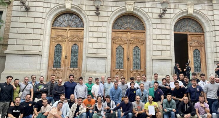 Han llenado el Salón del Palacio provincial para visibilizar las reivindicaciones que llevan meses trasladando, como la de incorporar un tercer bombero en las dotaciones mínimas. Han tenido que pasar un control de la Policía Nacional, que ha contado con más de media docena de agentes en el acto