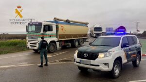Una colisión entre dos camiones provoca un vertido de gasoil en la CM-41 en Palomeque 03/11/2022 | Europa Press