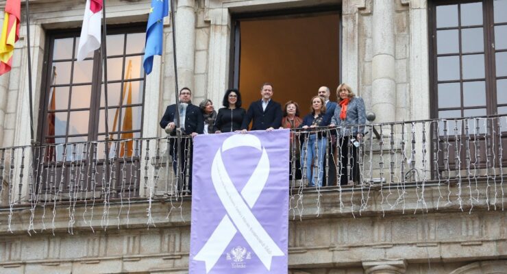Despliegan el lazo por el 25N en el Ayuntamiento de Toledo sin IU-Podemos y PSOE por "los postulados negacionistas de Vox"