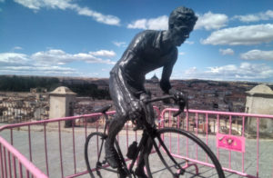 La estatua de Bahamontes en Toledo se convierte en lugar improvisado de homenaje al ciclista