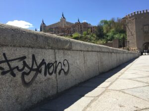 Las pintadas realizadas en el Puente de Alcántara de Toledo, un acto de vandalismo contra el patrimonio 21/04/2022 | Toledodiario