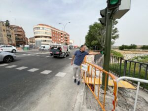 Los botones del semáforo son prácticamente inaccesibles, mientras que el acerado es inestable, critican. Con los trabajos se están instalando las cámaras de la Zona de Bajas Emisiones