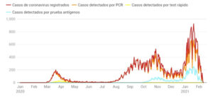 Respecto a jornadas anteriores, se trata de una caída de los contagios que también se da en el número de personas infectadas hospitalizadas y en el de fallecimientos