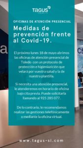 La empresa Tagus reabre sus oficinas de atención presencial con cita previa este lunes 18 de mayo 16/05/2020 | Toledodiario