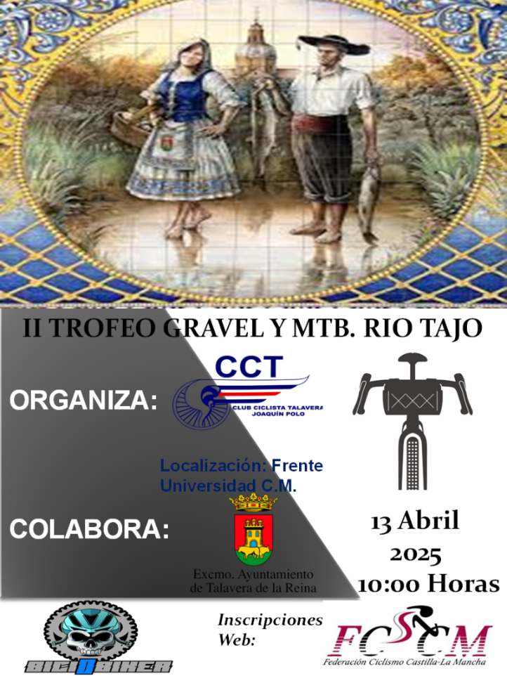 El Trofeo Gravel MTB Río Tajo llega este domingo 13 de abril a Talavera de la Reina y comarca de la mano del Club Ciclista Talavera Joaquín Polo en una segunda edición que será de nuevo sede del Campeonato de Castilla-La Mancha de la disciplina. La prueba comenzará a las 10:00 horas y está dirigida a las categorías de Junior hasta Masters, en modalidad masculina y femenina.