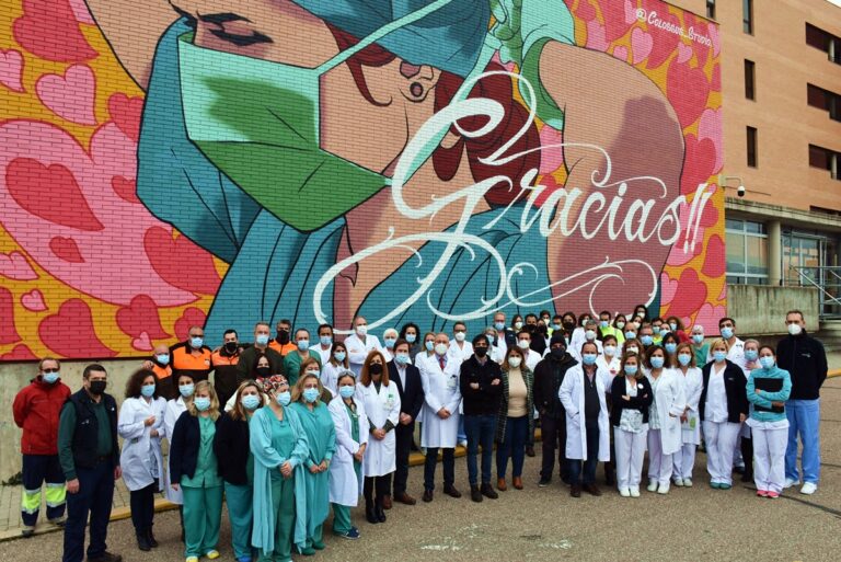 El Ayuntamiento de Talavera de la Reina ha inaugurado oficialmente el mural con el que homenajea y agradece el trabajo que está realizando el personal sanitario durante la pandemia.