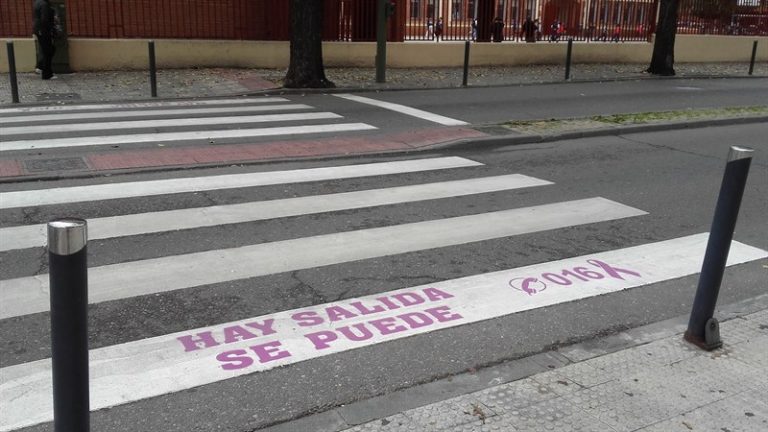 Si bien, una de las acciones más significativas ha sido la iniciativa de pintar mensajes de color morado en los pasos de peatones de la ciudad, en concreto los ubicados en la calle Segurilla, donde animan a plantar cara al maltrato machista con lemas como 'Hay salida, se puede' o 'Ellas somos todos', junto al número de teléfono 061, de información y asesoramiento en materia de violencia de género.