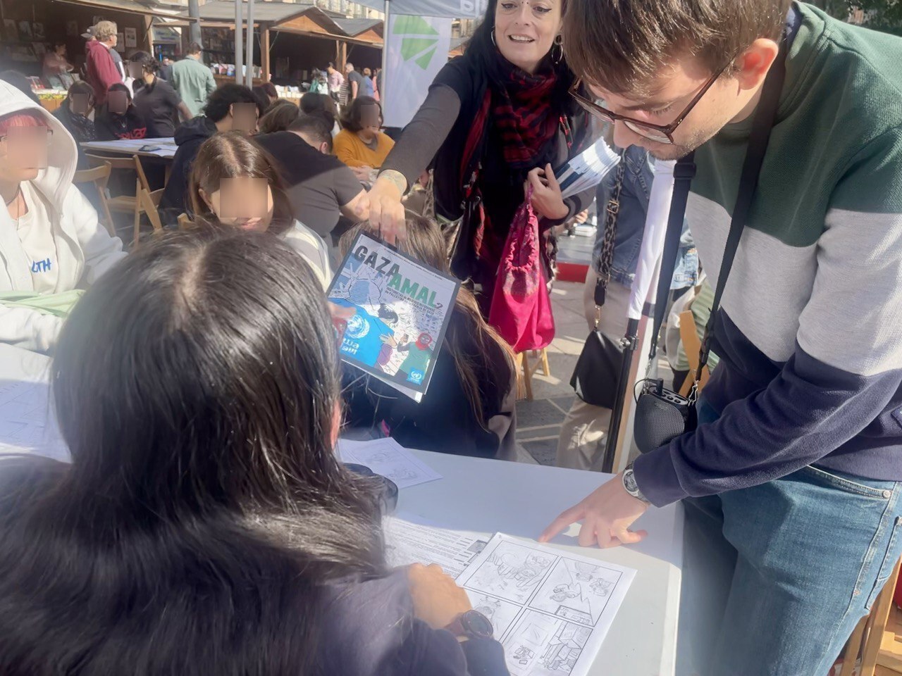 - Taller organizado por UNRWA con David Marto, centrado en la reedición del cómic Las mujeres en Palestina/ Imagen: Itziar Machicado