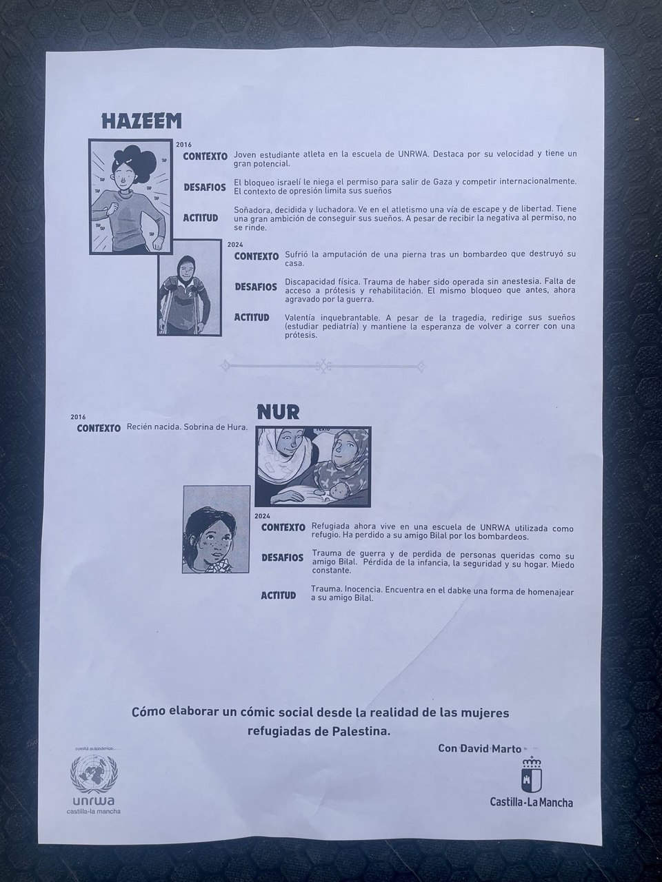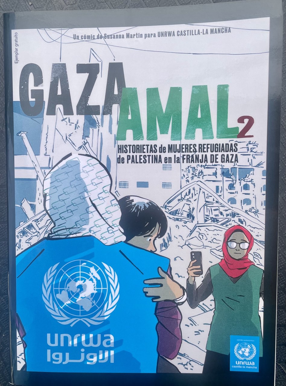 "Estamos trabajando el cómic social desde la realidad de las mujeres refugiadas de Palestina, utilizando el cómic 'Gaza Amal 2', de Susana Martín, que ha sido recientemente reeditado por UNRWA, continuando la historia de mujeres reales en la Franja de Gaza tras la ofensiva israelí de 2023", ha explicado la técnica de UNRWA Castilla-La Mancha, Ana Sánchez.