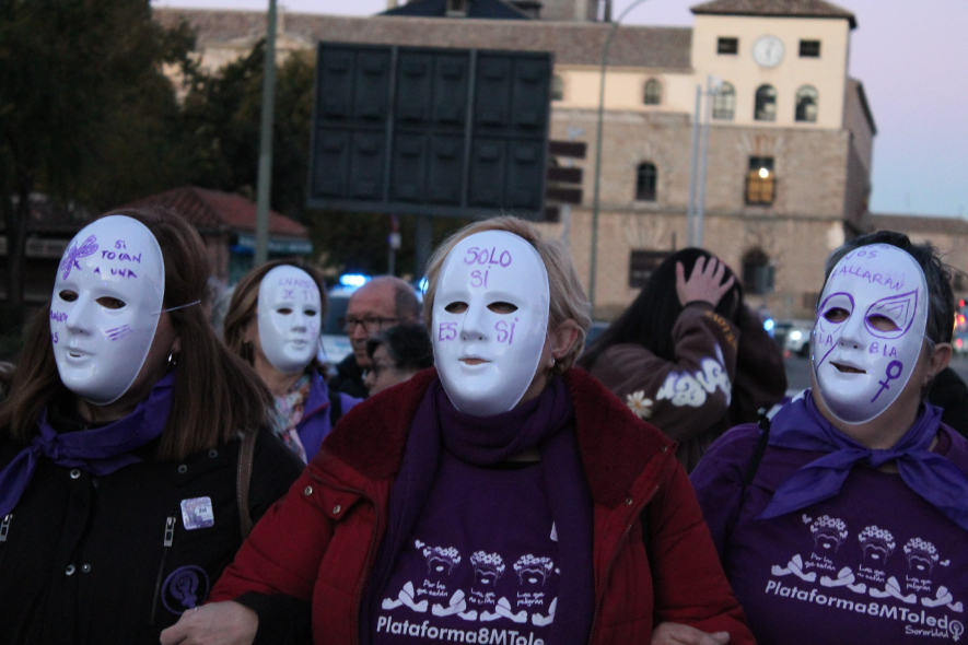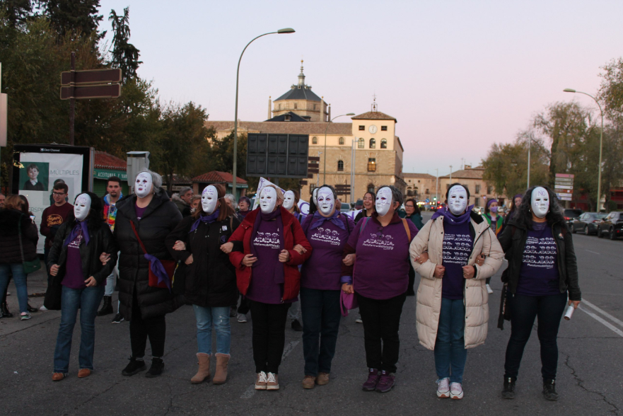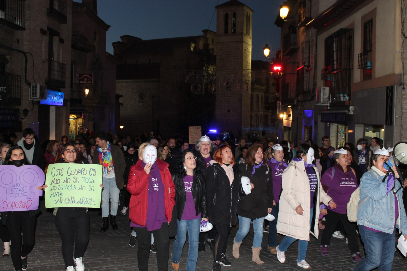 Las calles de Toledo se han vuelto a teñir de morado con motivo de las dos manifestaciones convocadas por el 25 de noviembre (25N), Día Internacional de la Eliminación de la Violencia contra la Mujer. Ambas, impulsadas por la Plataforma 8M y el Consejo Local de la Mujer, han partido a la misma hora -las 18.00 horas- desde el paseo de la Vega, a diferencia del año pasado, y han llegado unidas hacia a Zocodover.