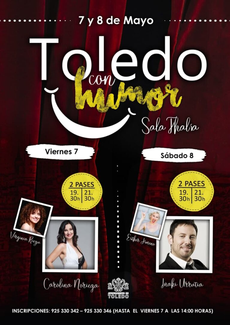 Las primeras sesiones del festival 'Toledo, con humor' se celebrarán este viernes 7 y sábado 8 de mayo, a las 19.30 y las 21.30, y a las 19.30 y las 20.30 horas, respectivamente. Será en la Sala Thalía, con un aforo que irá entre las 104 y las 150 personas, según se den las condiciones epidemiológicas, informó el concejal de Cultura, Teo García. "Es una actividad novedosa que planteamos en marzo de 2020 y se postergó por el confinamiento", recalcó el edil.
