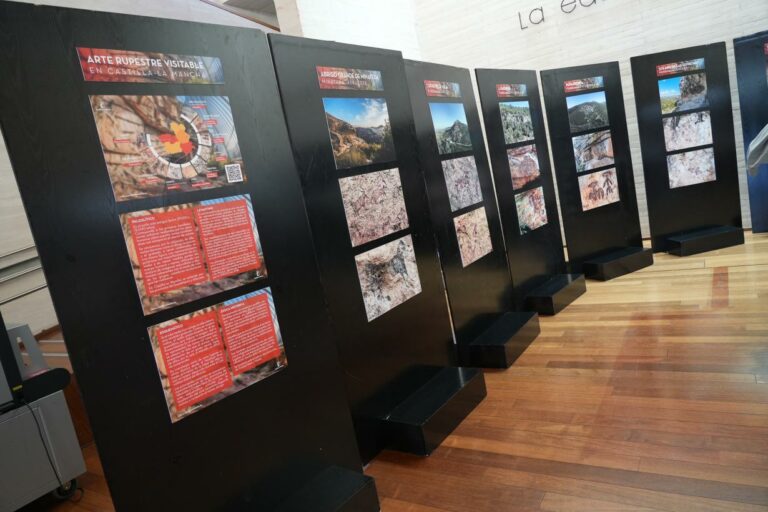 La exposición ‘Arte Rupestre visitable en Castilla-La Mancha’ está formada por un total de once paneles, en los que se ilustran los diez yacimientos visitables más representativos de este arte en la Comunidad Autónoma y se recogen los estilos presentes en la región como son el arte paleolítico, levantino, esquemático, así como grabados pertenecientes a esta época histórica.