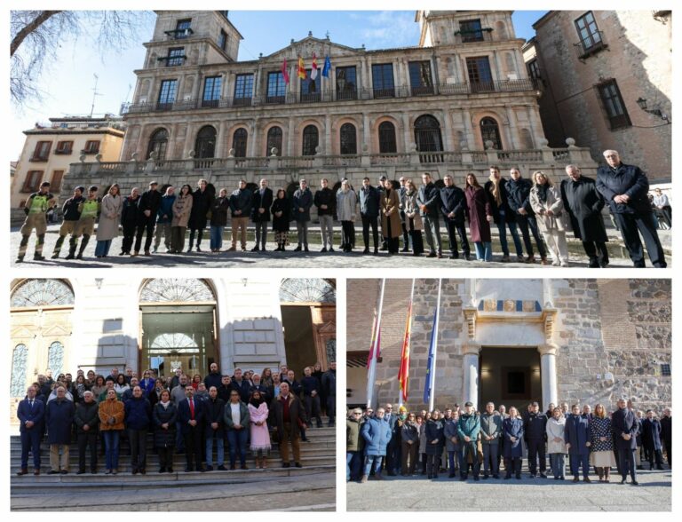 En Toledo se han llevado a cabo tres actos: en la plaza del Ayuntamiento, en la escalinata de la Diputación de Toledo y en la puerta del Palacio de Fuensalida, sede del Gobierno regional. En ellos se ha guardado un minuto de silencio y se han trasladado condolencias a todas las personas afectadas.