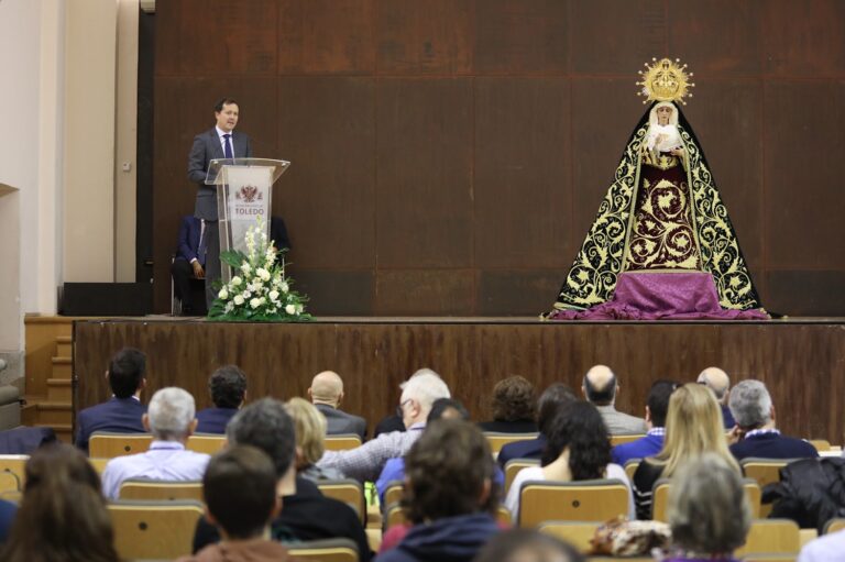 El alcalde de Toledo, Carlos Velázquez, ha asistido hoy, en el Centro Cultural San Marcos, a la presentación de la imagen de María Santísima de la Esperanza en su Soledad, una talla que saldrá por primera vez a las calles de la ciudad el próximo Miércoles Santo, junto al Cristo de la Humildad.