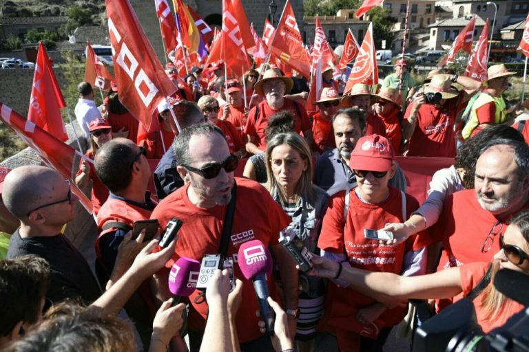 La marcha ha coincidido con la Jornada Mundial por el Trabajo Decente, así el secretario general de CCOO de Toledo, José Luis Arroyo, ha incidido en que “es necesario también trabajo decente para poder tener en el futuro unas pensiones dignas, y para ello es imprescindible derogar las reformas laborales y la reforma de pensiones”.