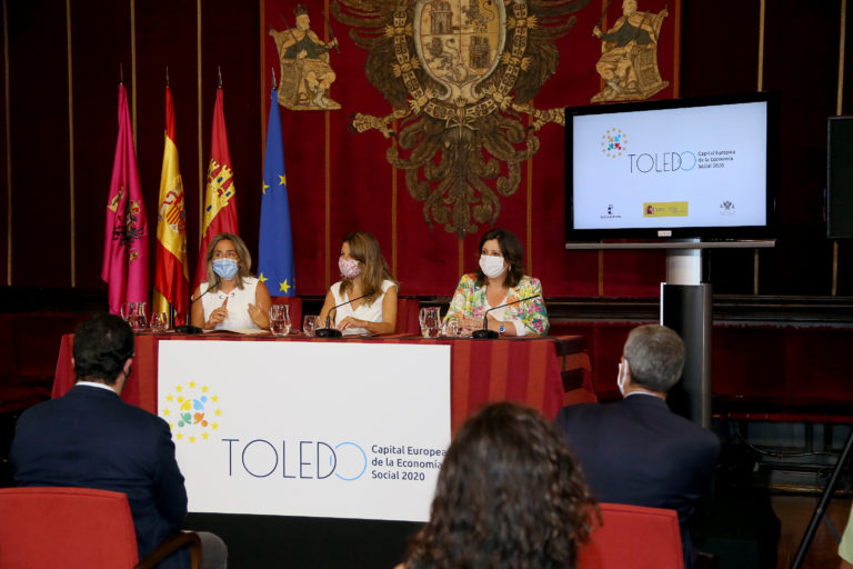 La ciudad de Toledo queda oficialmente proclamada “Capital Europea de la Economía Social 2020” tras el acto de presentación celebrado en la capital regional con la participación de la ministra de Trabajo, Yolanda Díaz, la consejera de Economía, Empresas y Empleo, Patricia Franco, y la alcaldesa de Toledo, Milagros Tolón.
