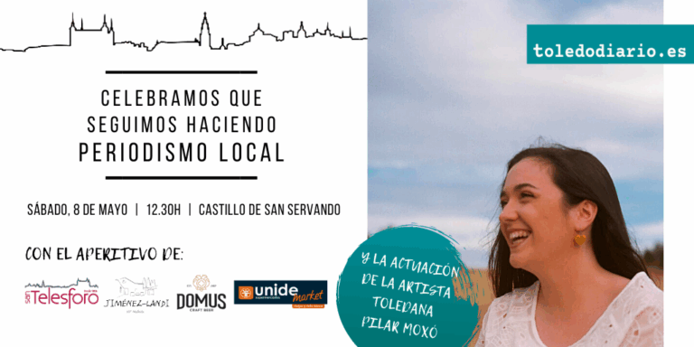 Y tú, ¿te quedas con nosotros? ¿apuestas por lo local? Si la respuesta es sí, te esperamos el sábado para celebrar juntos lo toledano: el periodismo, la actuación de Moxó y un aperitivo también muy toledano gracias a la colaboración de Cervezas DOMUS, Bodega Jiménez Landi, Mazapanes San Telésforo y supermercados UNIDE.