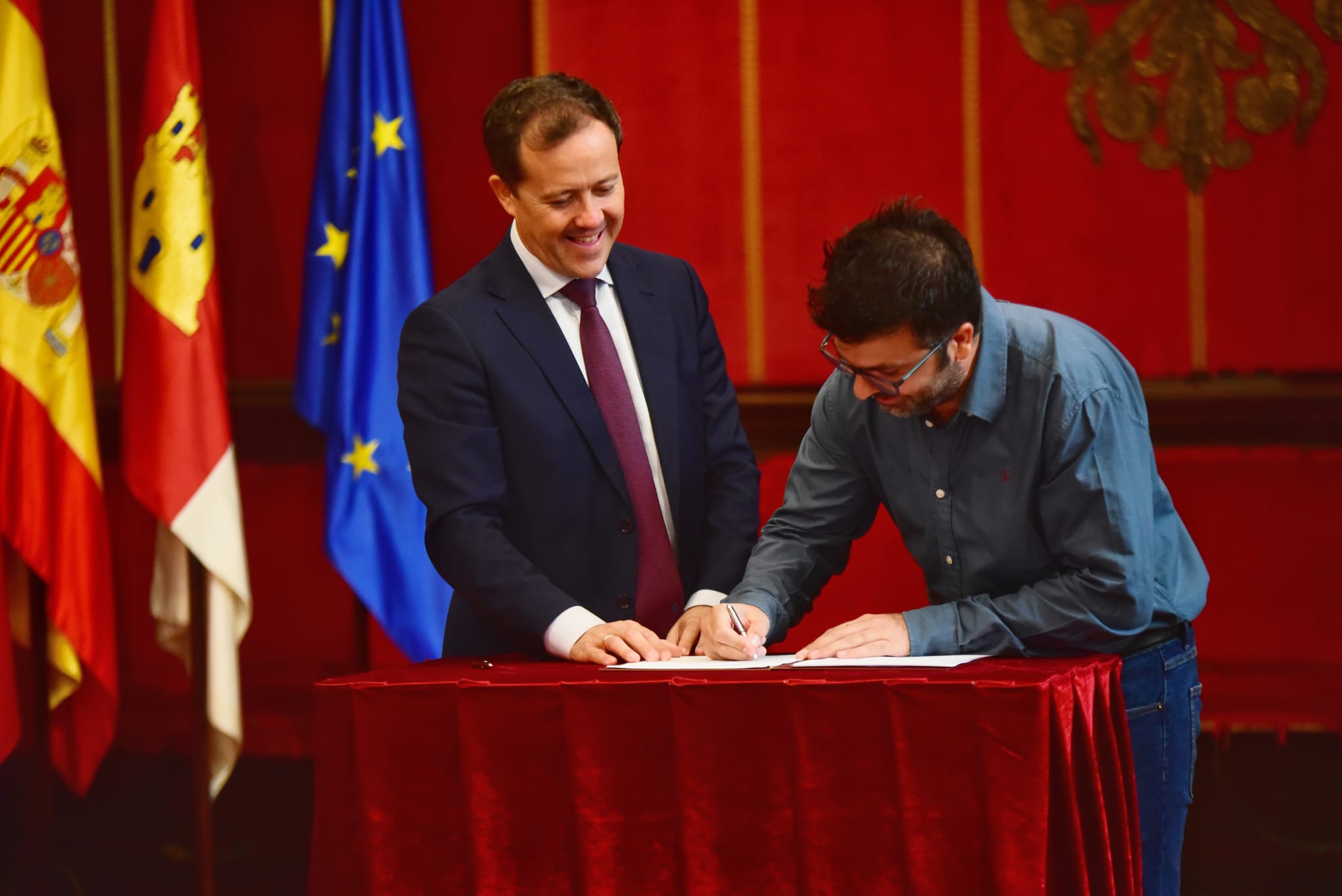 "Los medios de comunicación también tenían que tener espacio en esta candidatura. Estamos más que satisfechos por todas las muestras de apoyo que estamos recibiendo y esta es especialmente importante", ha recalcado el alcalde, Carlos Velázquez, en el acto que se ha celebrado en la Sala Capitular del Consistorio toledano.