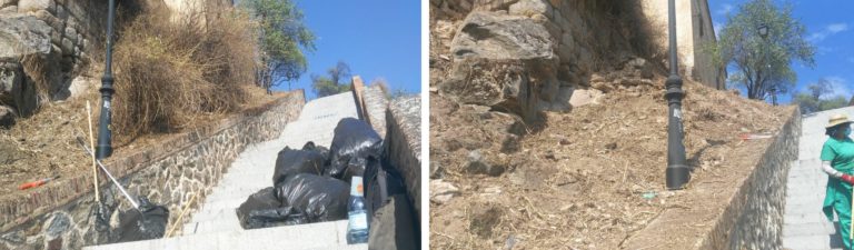Más allá de las nuevas intervenciones, el Plan de Empleo mantiene tareas en otros tantos espacios de la capital regional como es el caso del barrio de Azucaica donde se acomete la limpieza del vestíbulo y aseos de las antiguas escuelas o el desbroce y limpieza en la calle Alegría. También es el caso de la calle Ventalomar, del barrio de Santa María de Benquerencia, donde se acometen las mismas tareas de desbroce, limpieza de masa vegetal, retirada de ramas y residuos generales.