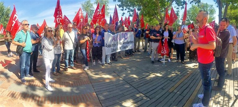 Este mismo lunes 17 de junio, Comisiones Obreras, UGT y la Asociación de Víctimas de Accidentes Laborales de Toledo se concentraban frente a la sede de la patronal, FEDETO, para denunciar los accidentes laborales ocurridos en menos de una semana en las dependencias del futuro parque Puy de Fou y en la empresa Logifashion. Ambas empresas se han asentado recientemente en Toledo. "No más muertes en el trabajo" fue el lema de la concentración, en la que exigían el "máximo rigor" a la hora de cumplir la Ley de Prevención de Riesgos Laborales.