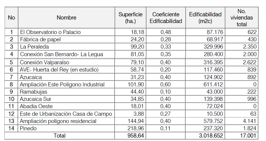 Además, dos de estos 14 desarrollos están orientados a usos industriales, dotacionales o comerciales, por lo que su proyección habitacional es de cero viviendas: la ampliación Este del Polígono industrial y el sector Abadía Oeste.