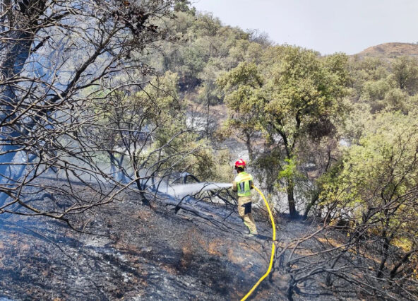 Respecto al viernes, los bomberos municipales señalan que trabajaron en el flanco derecho del fuego, en el arroyo sin nombre y en el arroyo del Vallejo de la Cierva; luego se trasladaron a la cabeza de fuego, en el flanco izquierdo y actuaron en la Dehesa del Aceituno, conteniendo el fuego en el arroyo del Aceituno y, finalmente, intervinieron en la Finca de Palomilla.