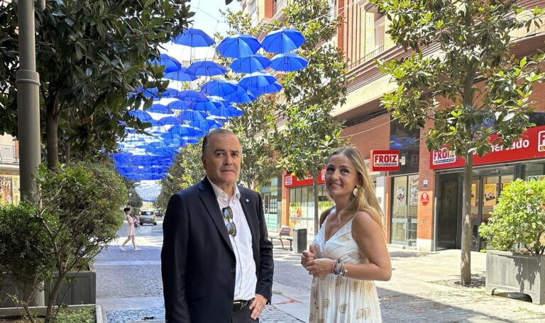 Un total de 1.500 paraguas blancos y azules darán sombra a dos de las principales avenidas de Talavera de la Reina: la calle San Francisco y la calle Trinidad.