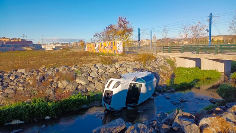 Un turismo ha aparecido volcado en el arroyo de la Rosa, frente a las vías del tren, tras una persecución policial que se produjo durante la madrugada de este miércoles en el barrio de Santa Bárbara y que terminó con un varón detenido, según informan fuentes policiales.