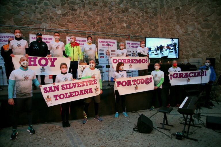 La alcaldesa de Toledo, Milagros Tolón, ha participado este jueves en el acto simbólico y de homenaje que este año ha sustituido a la San Silvestre Toledana y que ha sido organizado por el Club Amigos del Atletismo con la colaboración del Ayuntamiento de Toledo por las víctimas de la COVID-19 y quienes luchan contra el virus desde la primera línea.