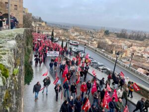 Alrededor de 1.200 delegados y delegadas de Comisiones Obreras (CCOO) de Castilla-La Mancha han tomado hoy las calles de Toledo en una multitudinaria manifestación. Esta movilización marca el inicio de una ofensiva sindical para situar las necesidades de los trabajadores en "el centro de la agenda política y social", bajo la firme consigna de mejorar sus condiciones de vida en tres ejes fundamentales: salarios dignos, acceso a la vivienda y reducción de la jornada laboral.