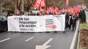 Uno de los puntos más críticos de la protesta ha sido la situación de la vivienda, descrita como un problema principal para la población castellanomanchega. El sindicato denuncia que es inútil subir los sueldos un 4% si los alquileres suben un 12%.
