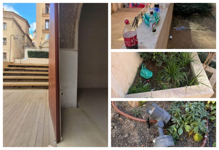 También se han encontrado restos de que se celebrara un botellón en la plaza y de que se destrozaran también algunas de las zonas ajardinadas que hay en esta plaza abierta al público, según trasladan desde el Consorcio de Toledo, entidad que gestionar este espacio.