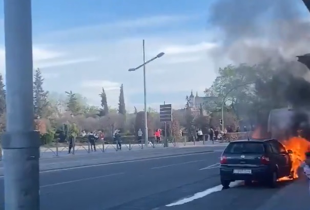 Incendio de un coche en la entrada de Toledo, por la rotonda de “El Lucero” (Toletvm).
