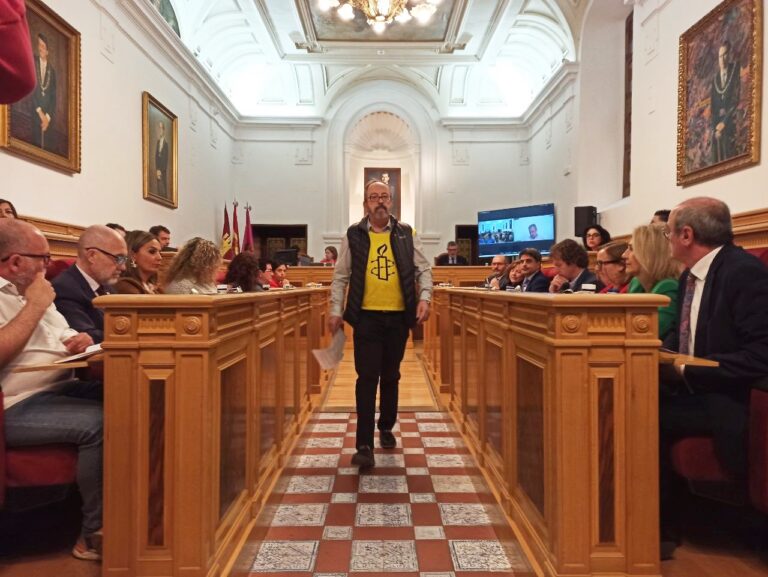 A la segunda fue la vencida. Después de que el mes pasado de marzo el Ayuntamiento de Toledo no pudiera aprobar una declaración institucional para pedir el alto el fuego en la guerra de Gaza, por el rechazo de Vox al texto presentado por Amnistía Internacional Castilla-La Mancha, este jueves sí que ha salido adelante tras haberse modificado parte del mismo.