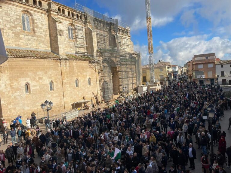 Ataviados con pañuelas blancos, miles de personas han recorrido las calles de este municipio de 5.268 para apoyar la rehabilitación de la colegiata y reclamar más ayudas de entidades públicas y privadas, así como de particulares.