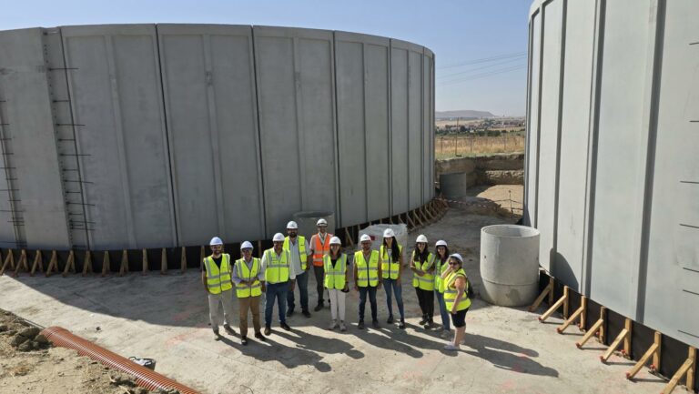 El director de Infraestructuras del Agua de Castilla-La Mancha (IACLM), Rubén Sobrino, junto a la directora de la Agencia del Agua de Castilla-La Mancha, Montserrat Muro, han visitado este miércoles las obras del nuevo depósito acompañados por el alcalde de Yuncler, Luis Miguel Martín, y el teniente alcalde de Villaluenga, Fernando Prieto, así como representantes de la empresa Aqualia que está llevando a cabo la construcción de esta infraestructura.