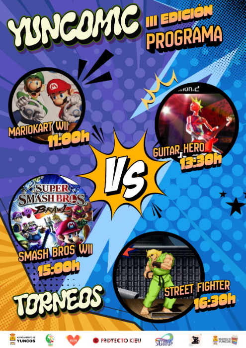 Uno de los principales atractivos serán los torneos de videojuegos, que se celebrarán de 11:15 a 16:30 horas, con títulos como Mario Kart, Guitar Hero, Super Smash Bros y Street Fighter.